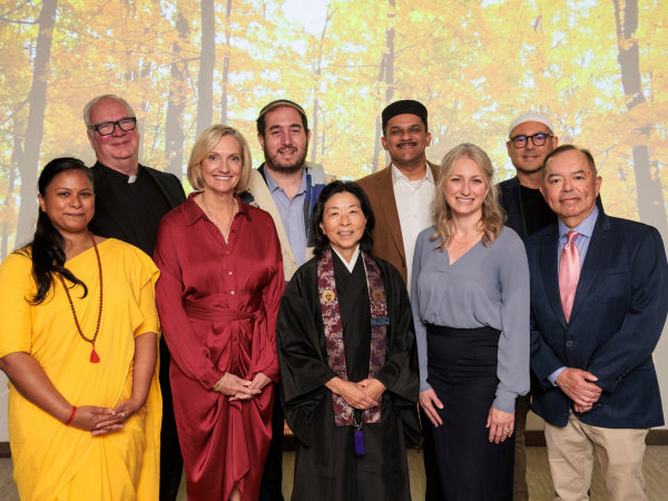 FIVE FAITH LEADERS REPRESENTING FIVE RELIGIONS JOINED CITY OF HOPE ORANGE COUNTY PRESIDENT ANNETTE WALKER ON WEDNESDAY, AUG. 20, FOR AN INTERFAITH BLESSING OF THE WETTERAU FAMILY SPIRITUAL CARE CENTER. PHOTO COURTESY OF CITY OF HOPE ORANGE COUNTY
