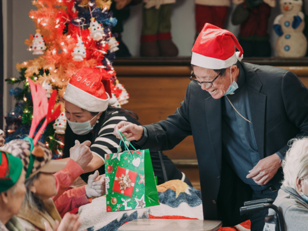 Bishop Thanh Thai Nguyen visited the Garden Grove Post Acute Nursing Facility on Dec. 6 for holiday festivities. Dressed in a Santa hat, he visited the residents, sang Christmas carols in English and Vietnamese and handed out presents to the residents.