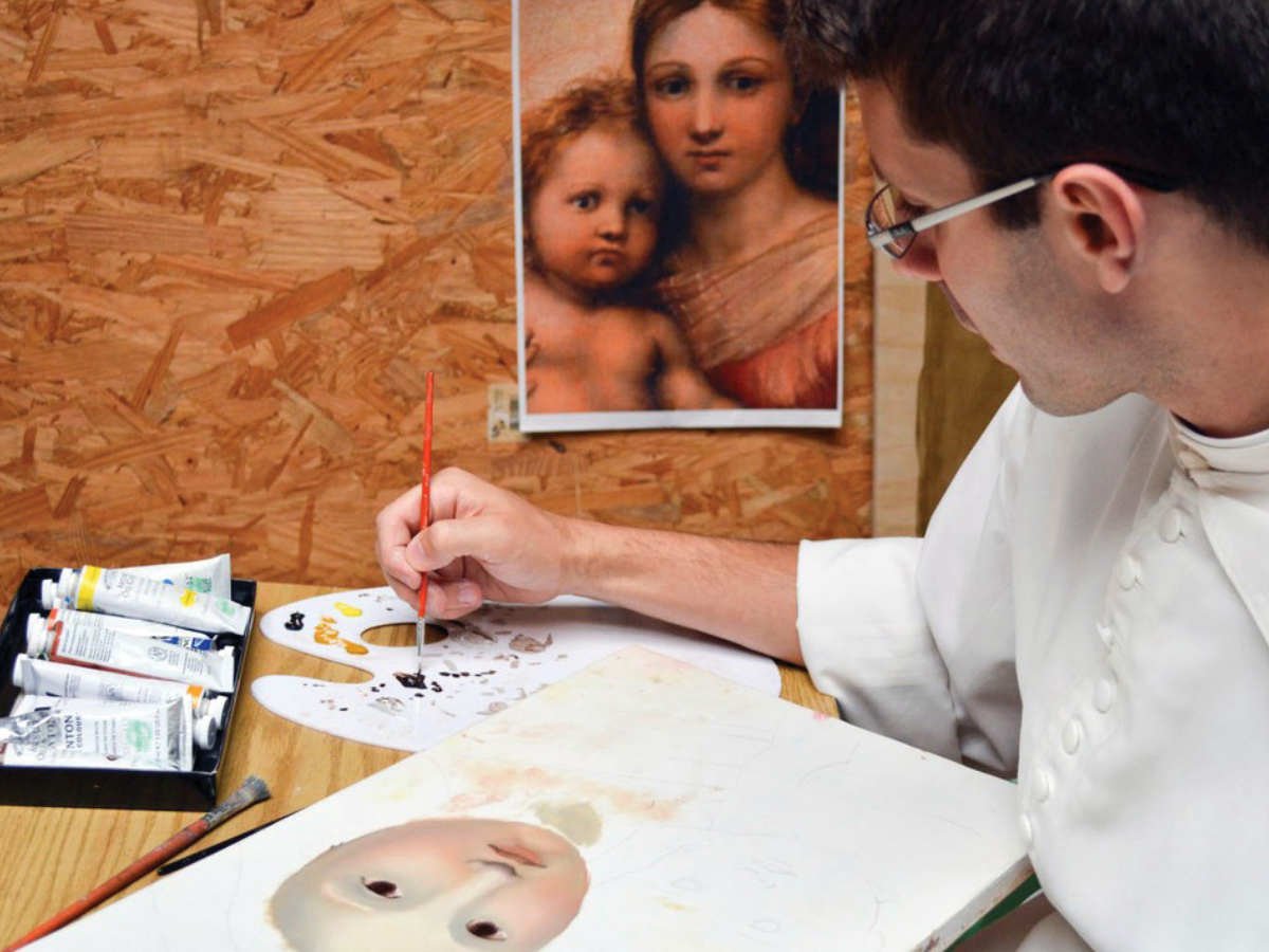 Now serving the Norbertine community as assistant novice master, he often works in the abbey’s art studio with other confreres, as the religious community members are called.