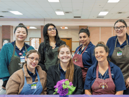 As part of a partnership with California State University, Fullerton, nursing students volunteer their time by speaking about the importance of good nutrition and hydration and by checking vital signs.