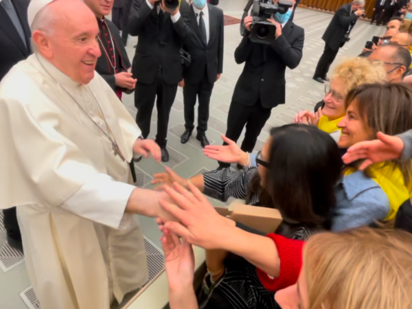 IN 2021, A CONTINGENCY OF RETROUVAILLE COMMUNITIES FROM THE U.S. AND EUROPE WERE GRANTED AN EXCLUSIVE AUDIENCE WITH POPE FRANCIS, WHO ADDRESSED THE VOLUNTEERS ABOUT THE IMPORTANCE OF KEEPING MARRIAGES AND FAMILIES TOGETHER. PHOTO COURTESY OF BRIAN CHU