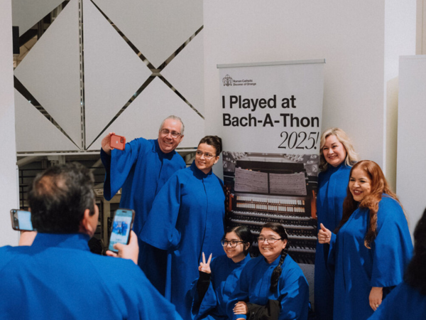 MUSICIANS POSE FOR A PHOTO DURING THE 2025 BACH-A-THON HELD AT CHRIST CATHEDRAL. PHOTO BY IAN TRAN/DIOCESE OF ORANGE