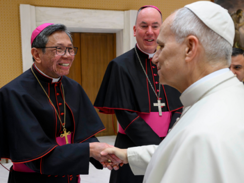 BISHOP THANH THAI NGUYEN GREETS POPE LEO XIV IN ROME ON MARCH 25.