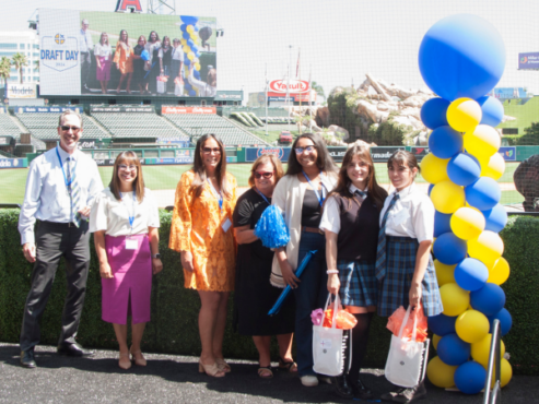 A highlight for Cristo Rey students and their families is Draft Day, a joyful, festive event where the students take the stage in front of cheering relatives and supporters after being “drafted” by their corporate partners. With a major league baseball field serving as a backdrop, this year’s Draft Day took place on Aug. 23 at Angel Stadium.