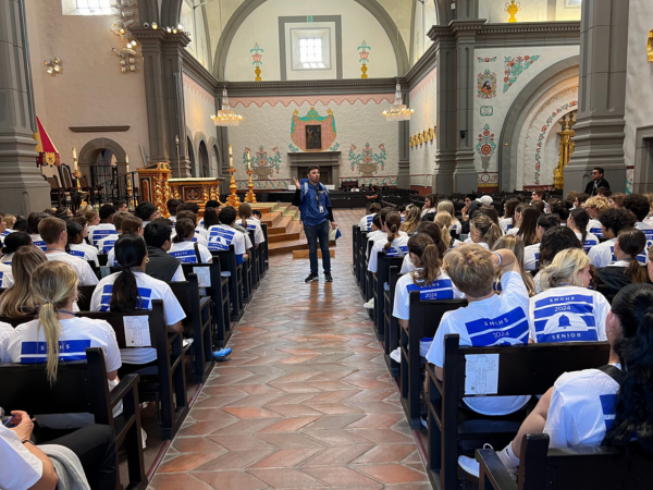 ON EAGLES’ WINGS, 280 members of the class of 2024 embarked on Santa Margarita Catholic High School’s annual senior pilgrimage from the campus to the Mission Basilica in San Juan Capistrano.