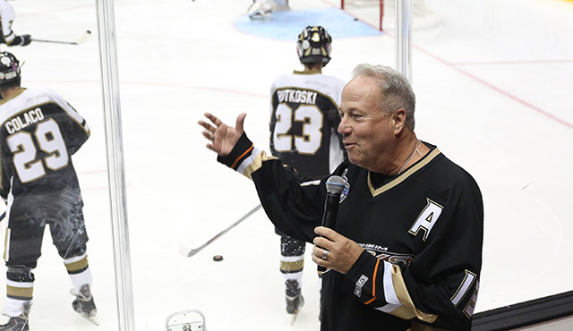 Participants in the Anaheim Ducks High School Hockey League (ADHSHL), the Friars and the Eagles took the ice following the Anaheim Ducks game that same night versus the Nashville Predators, where the Ducks came out on top with a 4-2 win.