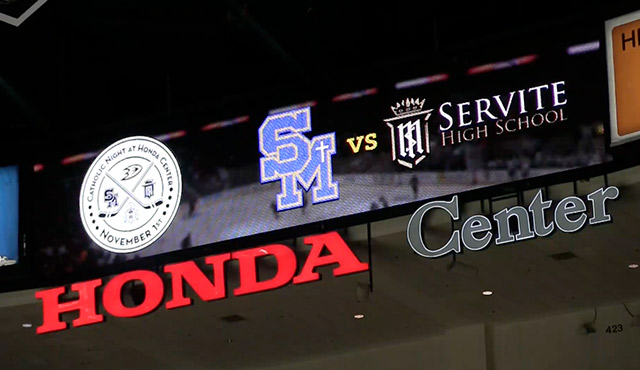 Honda Center played host last week to a faceoff between the ice hockey teams from Servite High School and Santa Margarita Catholic High School, with Santa Margarita coming away with the win in the exhibition game, 6-2.