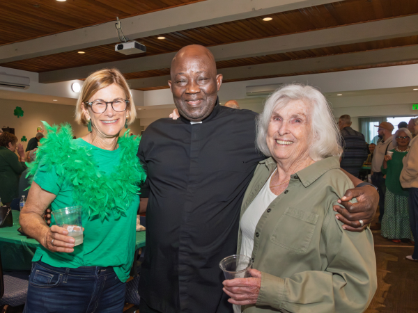 FR. GABRIEL ATIDOO, PAROCHIAL VICAR OF OUR LADY OF MOUNT CARMEL CATHOLIC CHURCH, POSES WITH GUESTS DURING THE PARISH’S ANNUAL ST. PATRICK’S DAY PARTY HELD ON MARCH 14. PHOTO BY ALAN WENDELL/DIOCESE OF ORANGE