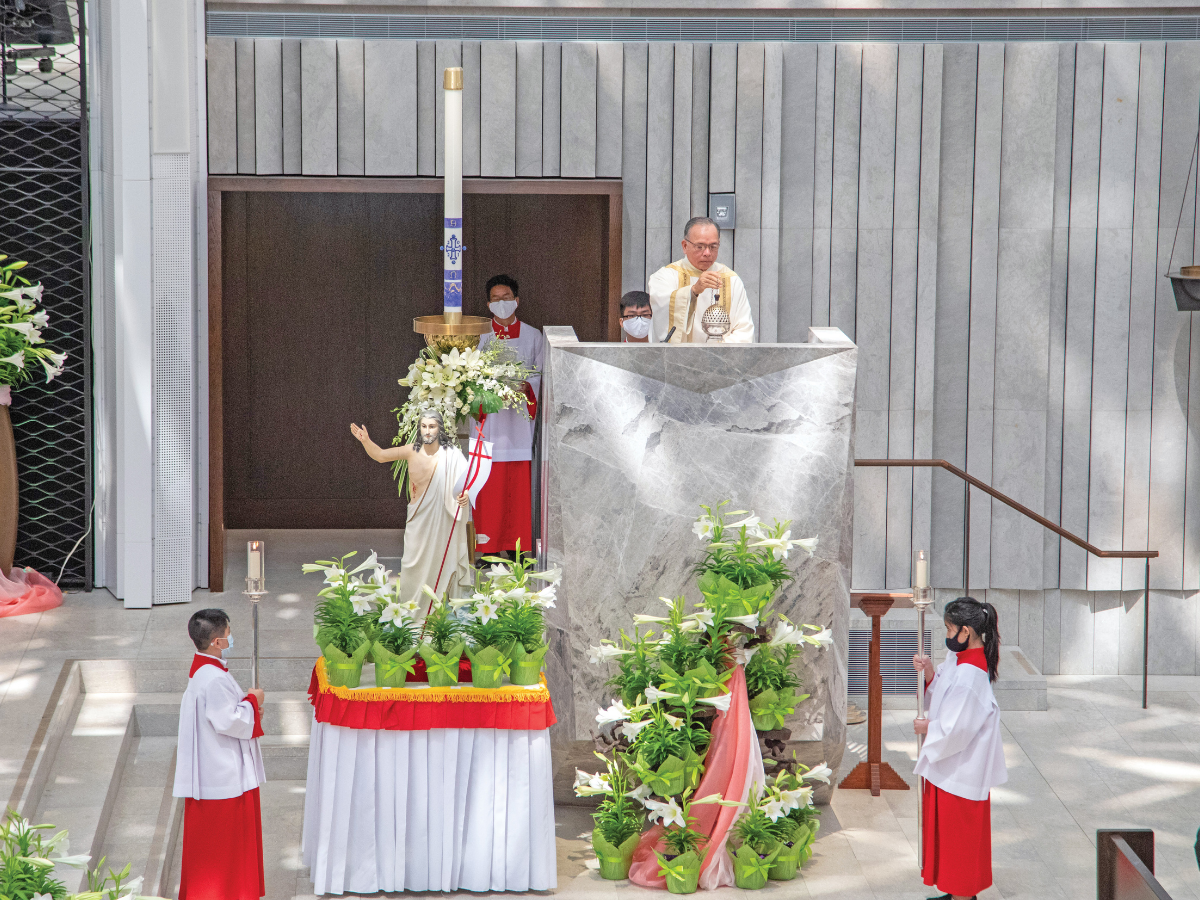 FR. CHRISTOPHER PHAM CELEBRATES THE EASTER MASS IN VIETNAMESE ON APRIL 4, 2021. PHOTO: CHUCK BENNETT
