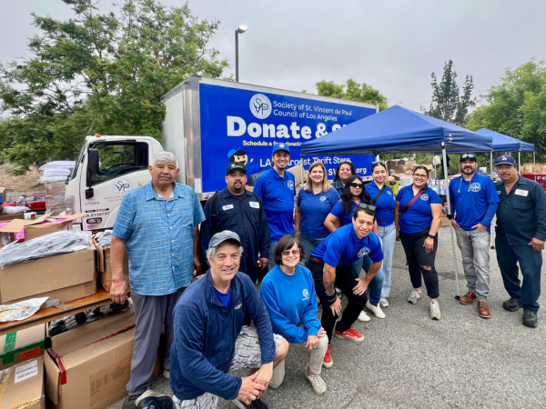 ST. ELIZABETH OF HUNGARY PARISH’S SOCIETY OF ST. VINCENT DE PAUL (SVDP) VOLUNTEERS POSE FOR A GROUP PHOTO. PHOTO COURTESY OF THE ORANGE CATHOLIC FOUNDATION