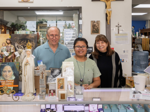 Her prayer was answered shortly after Cynthia took the lead in opening JMJ’s Catholic Store in 2018. Gary took a month off to help her open the store, but he never returned to his casino job.