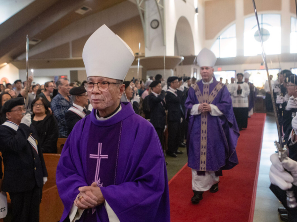 BISHOP THANH THAI NGUYEN AND BISHOP TIMOTHY FREYER PROCEED TO THE ALTAR OF LA