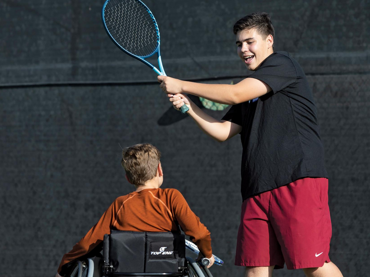 Keith Orahood, JSerra’s assistant coach under Kurt, was inspired to start an adaptive tennis program after coaching Lions’ sophomore Landon Sachs, a wheelchair bound member of the school’s tennis team.