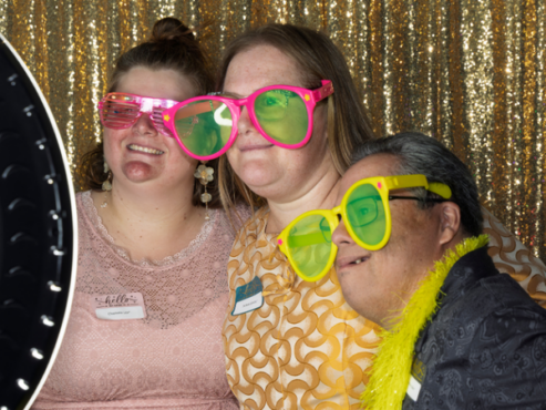 Liam Ferris manned the “Foto Fun Fest” booth where a consistent flow of guests posed for the camera. Kathy Lincoln stepped in front of the camera while her attendant Yesenia Menjivar draped her in a pink feather boa and oversized sunglasses.