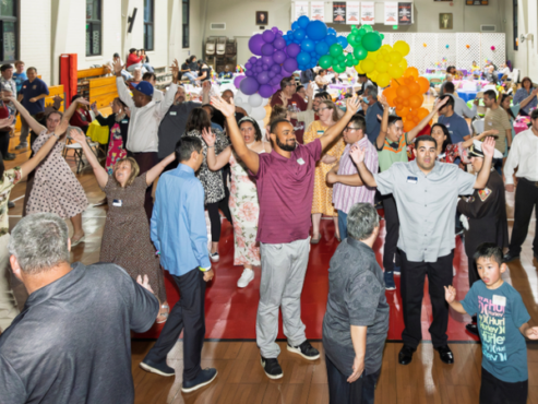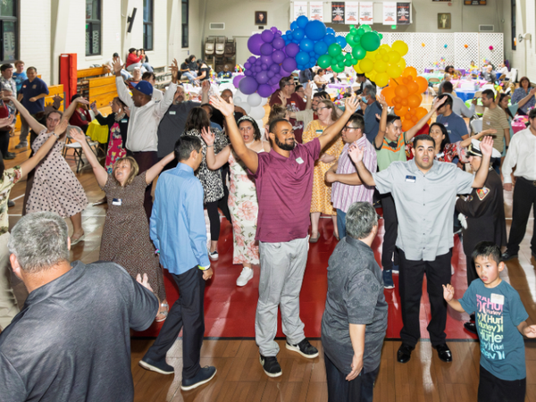 GUESTS OF THE APRIL 17 DANCE TO “YMCA” TOGETHER.
