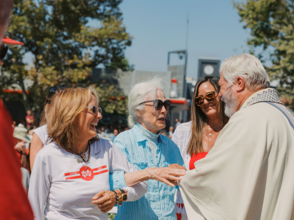 Approximately 1,300 alumni, family and friends gathered in sunny summer weather for an outdoor service in the central pavilion of Mary’s Grotto.