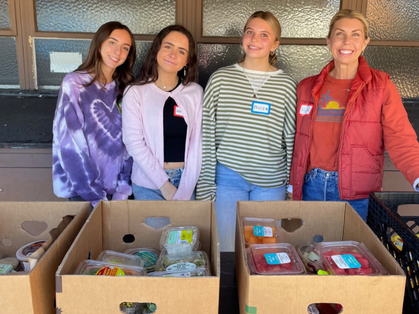 SOFIA STAFF (LEFT) VOLUNTEERING AT SERRA’S FOOD PANTRY IN SAN JUAN CAPISTRANO. PHOTO BY MIKE VULPO