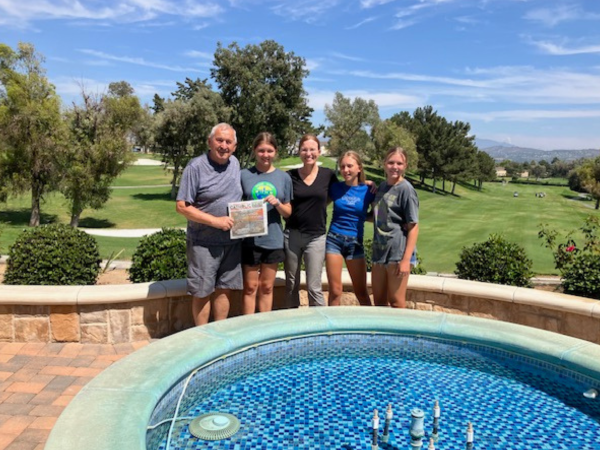 Pictured with a copy of OC Catholic are Paul, Elizabeth, Dr. Jane, Victoria and Sofia.