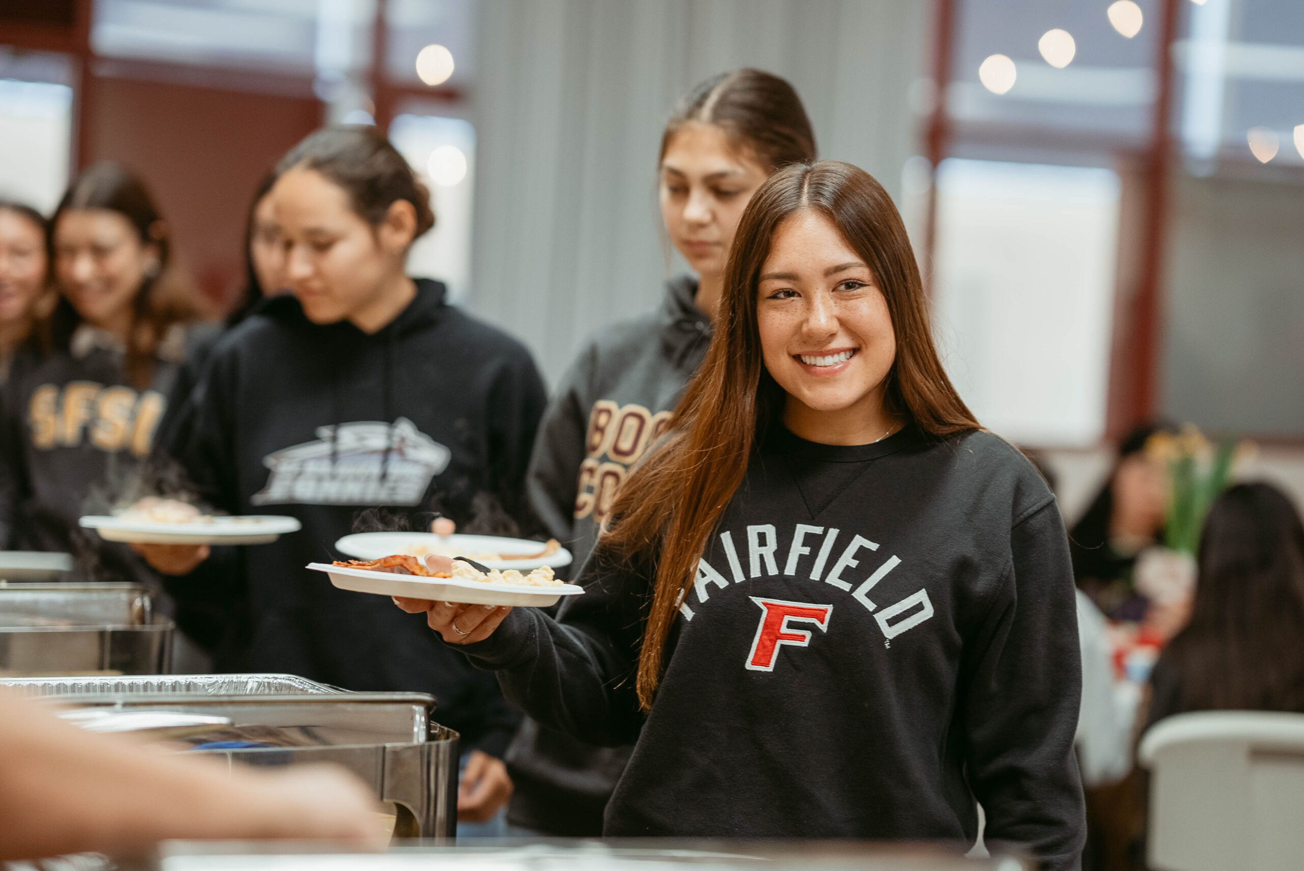 ROSARY ACADEMY SENIORS ENJOY BREAKFAST DURING A TRADITIONAL EVENT LEADING UP TO GRADUATION.