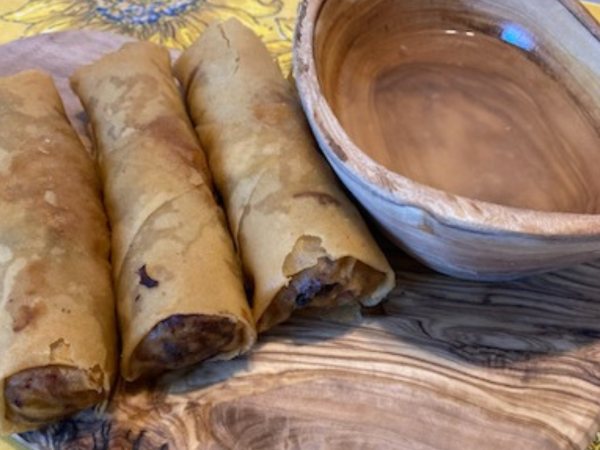 Serve the lumpia with the dipping sauce.