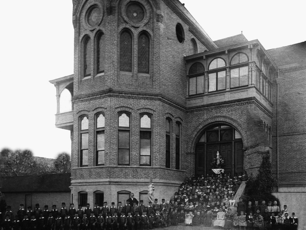 The school was founded by Mother Maria Pia Backes, O.P., foundress of the Dominican Sisters of Mission San Jose, in 1889. She bought a 3-acre tract of land on Palm Street, which is now Harbor Boulevard, and constructed a three-story red brick building. The campus started with two classrooms and accommodations for the sisters and student boarders.