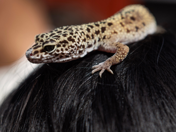 A LEOPARD GECKO FINDS A PLACE TO SIT ON MARCH 31 AT ST. JOHN THE BAPTIST SCHOOL.