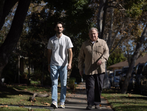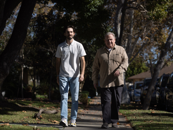 COLIN HORAN AND HIS FATHER JAY HORAN TAKE A WALK IN FULLERTON ON NOV. 17. PHOTOS BY DREW KELLEY/DIOCESE OF ORANGE