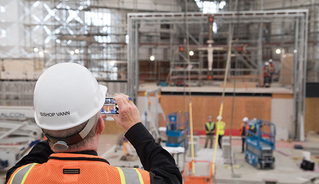Bishop Vann was actively involved in the selection of the hard surfaces installed in the cathedral. He toured Grassi Family Stone/Marble Works, which supplied the stone for the flooring.