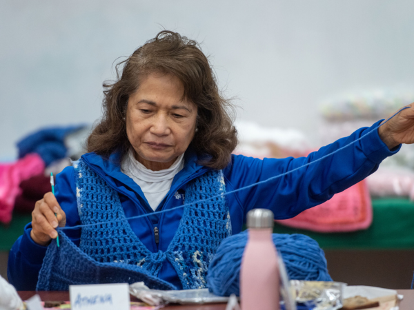 La Rosa is an expert knitter and a resource for others should they drop a stitch or need help.